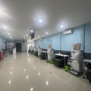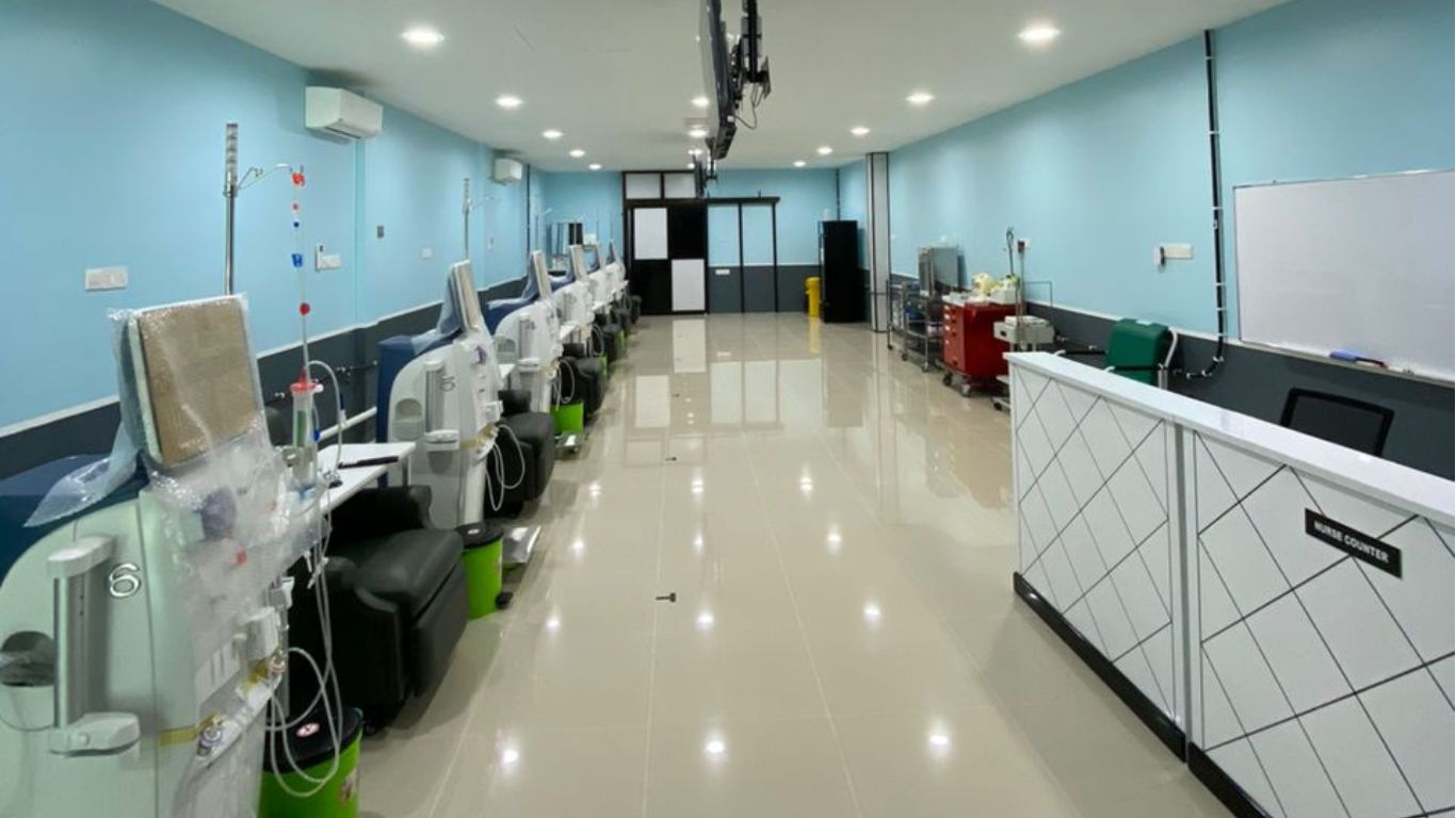 Ruang rawatan yang berhawa dingin dan dilengkapi dengan kerusi dialisis ergonomik.